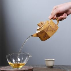 Chiếc ấm này được chế tác thủ công, từng góc cạnh đều được chăm chút kỹ lưỡng để đảm bảo sự hoàn hảo về mặt thẩm mỹ và công năng. Quai cầm chắc chắn, vòi rót chính xác và nắp khít chặt là những yếu tố giúp chiếc ấm trở thành lựa chọn hàng đầu của những người yêu trà.