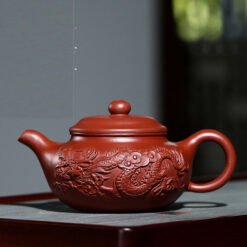Ấm được chạm khắc hoàn toàn bằng tay bởi các nghệ nhân lành nghề. Họa tiết lấy cảm hứng từ thiên nhiên như hoa sen, mây trời, hoặc các đường nét trừu tượng, tượng trưng cho sự thanh bình và cân bằng. Mỗi chi tiết đều thể hiện sự khéo léo và tinh xảo, khiến chiếc ấm trở thành tác phẩm nghệ thuật thực thụ.