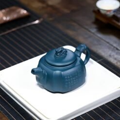 Ấm được chế tác từ chất đất Thiên Thanh Nê, một loại tử sa thuộc nhóm nguyên liệu quý hiếm, nổi bật với màu xanh thẫm pha lẫn ánh kim nhẹ nhàng. Loại đất này không chỉ có giá trị thẩm mỹ cao mà còn giữ nhiệt và truyền nhiệt tối ưu, giúp chiết xuất hương vị trà một cách trọn vẹn.