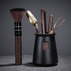 • Đặc điểm: Bao gồm 5 dụng cụ, chế tác từ gỗ mun, kết hợp với đồng.